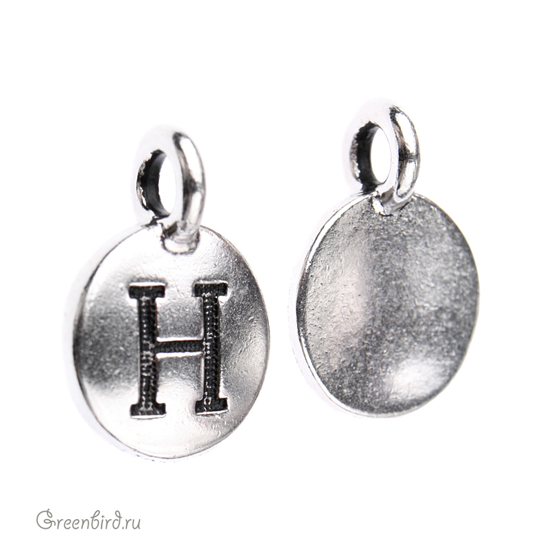 Фурнитура для бижутерии - подвеска круглая с буквой. Цвет: античное серебро. Размер с петелькой: 16,5 х 11,7 мм, отверстие петельки: 3 мм. Цена указана за 1 шт.