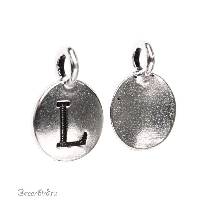 Фурнитура для бижутерии - подвеска круглая с буквой. Цвет: античное серебро. Размер с петелькой: 16,5 х 11,7 мм, отверстие петельки: 3 мм. Цена указана за 1 шт.