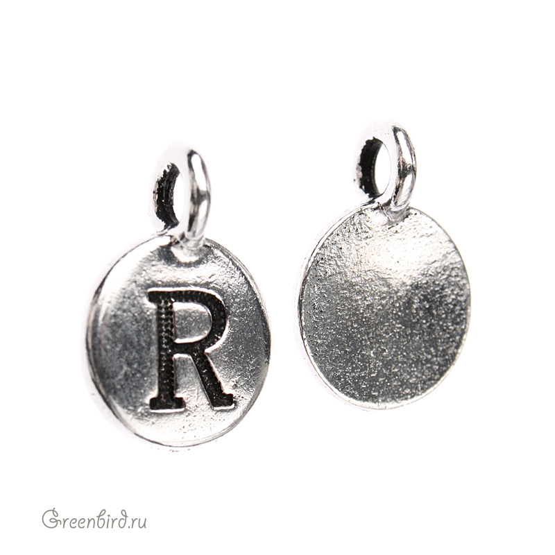 Фурнитура для бижутерии - подвеска круглая с буквой. Цвет: античное серебро. Размер с петелькой: 16,5 х 11,7 мм, отверстие петельки: 3 мм. Цена указана за 1 шт.