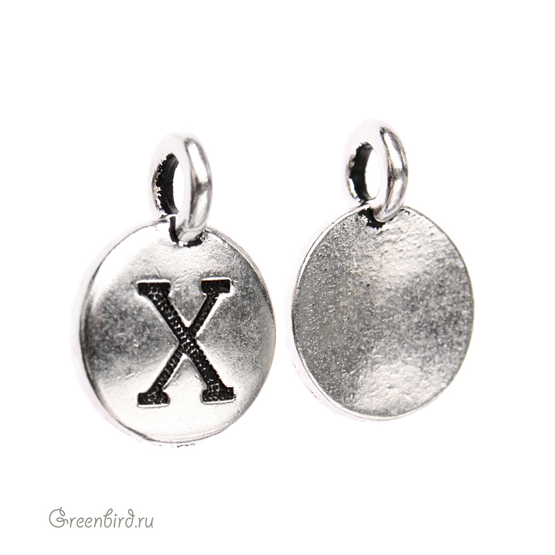 Фурнитура для бижутерии - подвеска круглая с буквой. Цвет: античное серебро. Размер с петелькой: 16,5 х 11,7 мм, отверстие петельки: 3 мм. Цена указана за 1 шт.