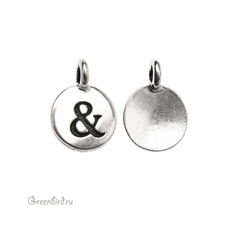 Фурнитура для бижутерии - подвеска круглая со знаком амперсанд (&). Цвет: античное серебро. Размер с петелькой: 16,5 х 11,7 мм, отверстие петельки: 3 мм. Цена указана за 1 шт.