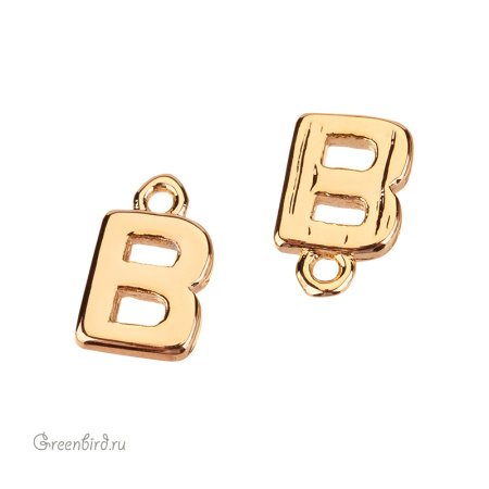 Фурнитура для бижутерии - подвеска в форме буквы «B», гладкая с лицевой стороны и фактурная с другой. Материал: латунь, покрытие: золото. Размер с колечком: 8 х 5 мм, толщина: 1,3 мм, внутренний диаметр колечка: 0,7 мм. Производство: Китай. Цена указана за 1 шт.