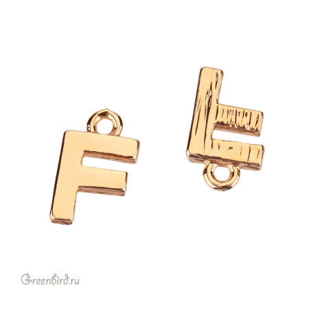 Фурнитура для бижутерии - подвеска в форме буквы «F», гладкая с лицевой стороны и фактурная с другой. Материал: латунь, покрытие: золото. Размер с колечком: 7,8 х 5 мм, толщина: 1,3 мм, внутренний диаметр колечка: 0,7 мм. Производство: Китай. Цена указана за 1 шт.