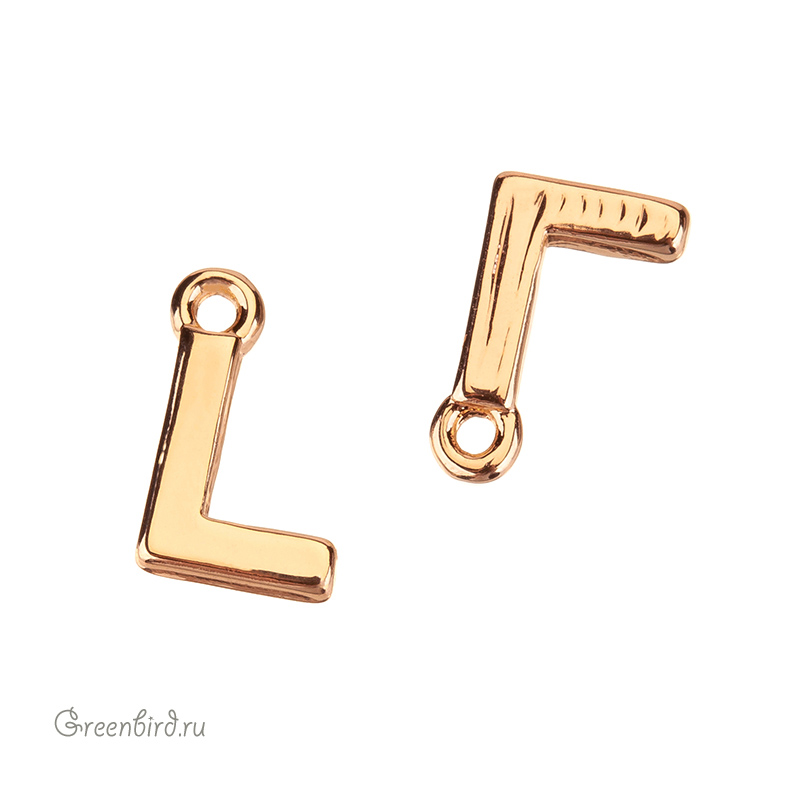 Фурнитура для бижутерии - подвеска в форме буквы «L», гладкая с лицевой стороны и фактурная с другой. Материал: латунь, покрытие: золото. Размер с колечком: 8 х 5 мм, толщина: 1,3 мм, внутренний диаметр колечка: 0,7 мм. Производство: Китай. Цена указана за 1 шт.