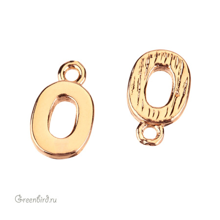 Фурнитура для бижутерии - подвеска в форме буквы «O», гладкая с лицевой стороны и фактурная с другой. Материал: латунь, покрытие: золото. Размер с колечком: 8 х 4,7 мм, толщина: 1,3 мм, внутренний диаметр колечка: 0,7 мм. Производство: Китай. Цена указана за 1 шт.