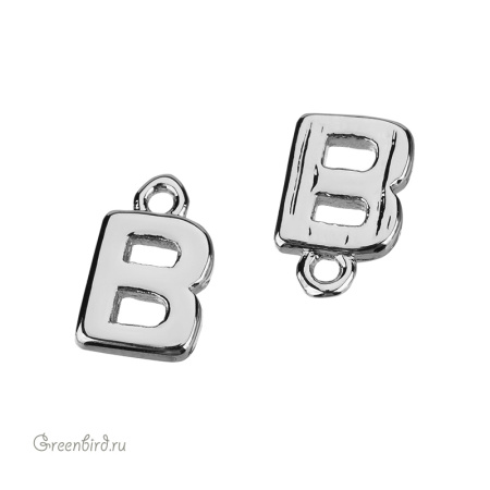 Фурнитура для бижутерии - подвеска в форме буквы «B», гладкая с лицевой стороны и фактурная с другой. Материал: латунь, покрытие: родий. Размер с колечком: 8 х 5 мм, толщина: 1,3 мм, внутренний диаметр колечка: 0,7 мм. Производство: Китай. Цена указана за 1 шт.