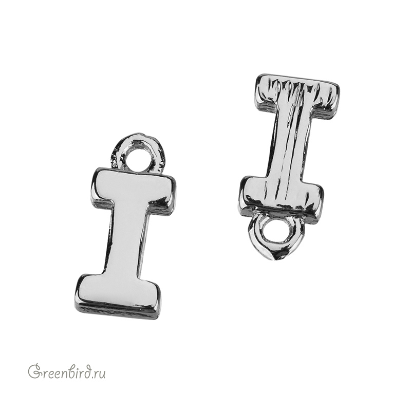 Фурнитура для бижутерии - подвеска в форме буквы «I», гладкая с лицевой стороны и фактурная с другой. Материал: латунь, покрытие: родий. Размер с колечком: 8 х 3,6 мм, толщина: 1,3 мм, внутренний диаметр колечка: 0,7 мм. Производство: Китай. Цена указана за 1 шт.
