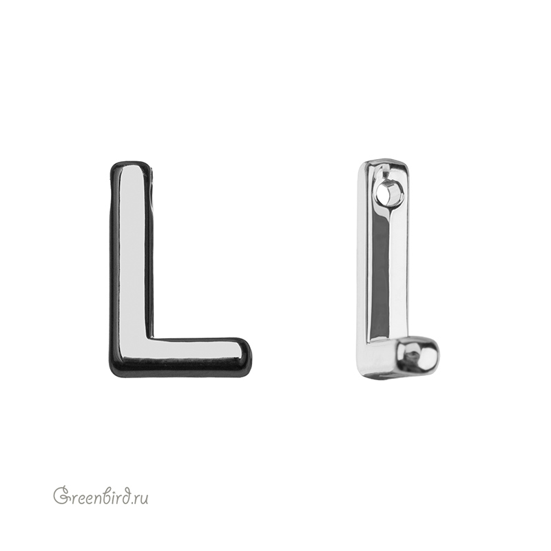 Фурнитура для бижутерии - подвеска в форме буквы «L», гладкая. Материал: латунь, покрытие: родий. Размер: 12 х 8 мм, толщина: 2,5 мм, диаметр отверстия: 1,1 мм. Производство: Китай. Цена указана за 1 шт.