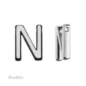 Фурнитура для бижутерии - подвеска в форме буквы «N», гладкая. Материал: латунь, покрытие: родий. Размер: 12 х 9 мм, толщина: 2,5 мм, диаметр отверстия: 1,1 мм. Производство: Китай. Цена указана за 1 шт.