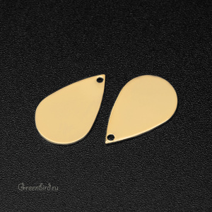 Фурнитура для бижутерии - подвеска плоская гладкая в форме капли. Материал: латунь, покрытие: золото. Размер: 11,4 х 17,9 мм, внутренний диаметр отверстия: 1,1 мм. Производство: Китай. Цена указана за 1 шт.