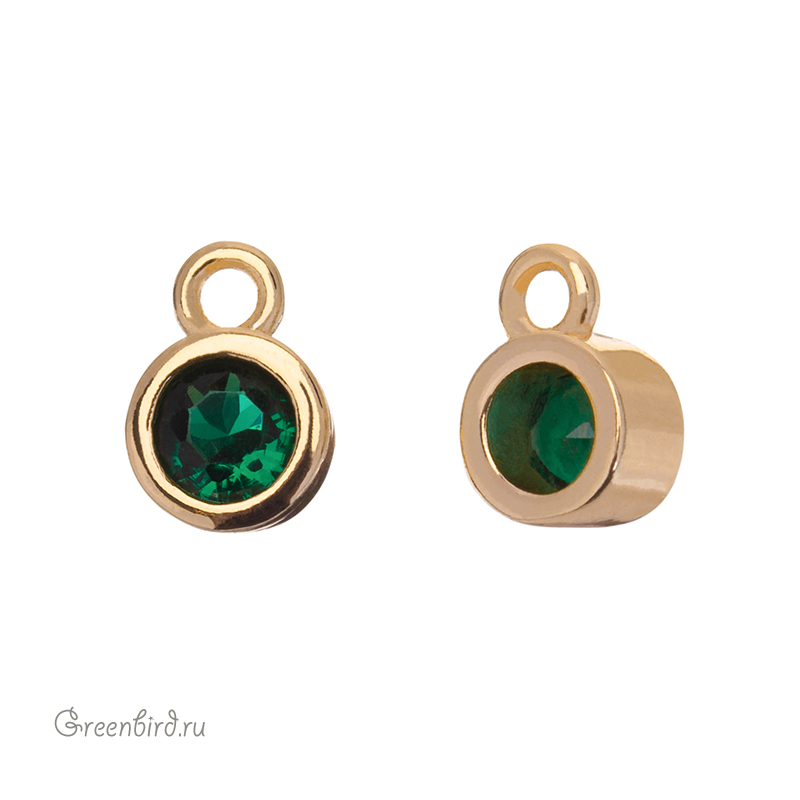 Фурнитура для бижутерии - подвеска круглая с фианитом. Материал: латунь, покрытие: золото. Цвет вставки: зеленый. Размер с колечком: 8 х 5,4 х 3,3 мм, внутренний диаметр колечка: 1,4 мм. Производство: Китай. Цена указана за 1 шт.