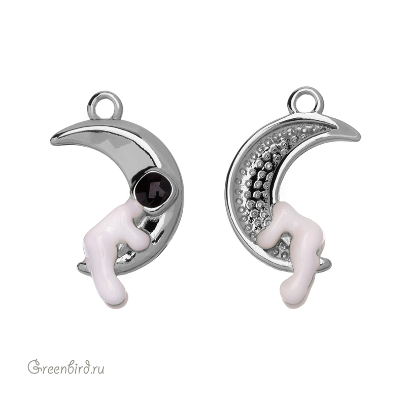 Фурнитура для бижутерии - подвеска с эмалью в форме космонавта на луне. Материал: латунь, покрытие: родий. Размер с колечком: 22,3 х 12 мм, толщина: 4,5 мм, внутренний диаметр отверстия: 1,9 мм. Производство: Китай. Цена указана за 1 шт.