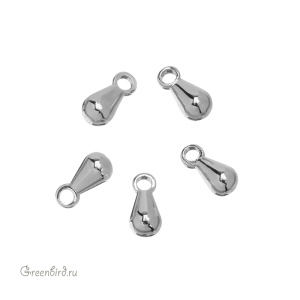 Фурнитура для бижутерии - подвеска в форме маленькой капельки. Может применяться в качестве подвески для удлинительной цепочки. Материал: латунь, покрытие: родий. Размер с колечком: 6 х 3 мм, внутренний диаметр отверстия: 1,2 мм. Производство: Китай. Цена указана за 1 шт.