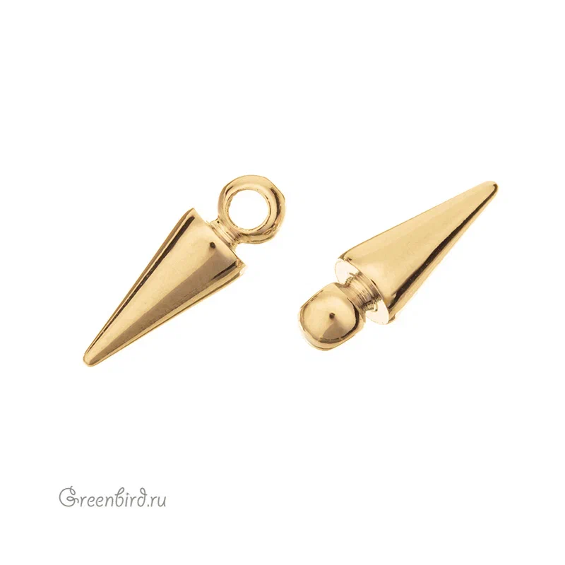 Фурнитура для бижутерии - подвеска в форме шипа. Материал: латунь, покрытие: золото. Размер: 15 х 5 мм, диаметр отверстия: 1,5 мм. Производство: Китай. Цена указана за 1 шт.