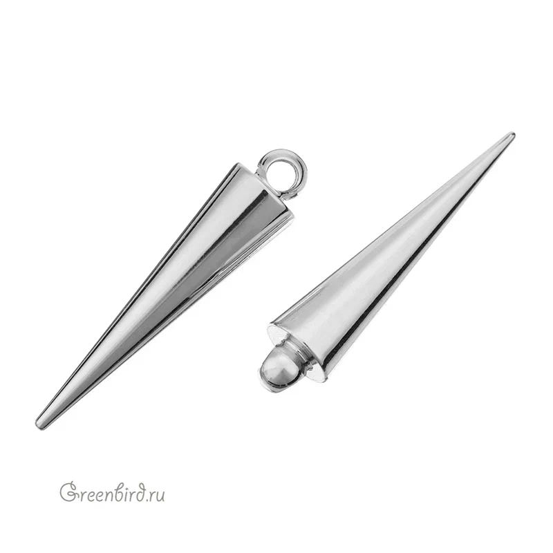 Фурнитура для бижутерии - подвеска в форме шипа. Материал: латунь, покрытие: родий. Размер: 36 х 8 мм, диаметр отверстия: 2,5 мм. Производство: Китай. Цена указана за 1 шт.