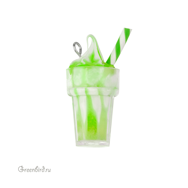 Фурнитура для бижутерии - подвеска в форме стаканчика с мороженым. Материал: акрил (пластик), цвет: зеленый/белый. Материал фурнитуры: латунь. Размер: 26 х 13 мм, внутренний диаметр колечка: 1,8 мм. Производство: Китай. Цена указана за 1 шт.