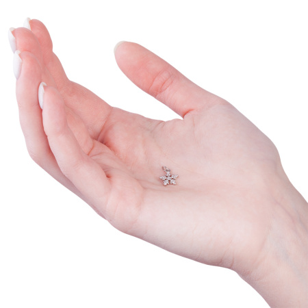 Фурнитура для бижутерии - подвеска в форме снежинки, с одной стороны украшенная фианитами. Материал: латунь, покрытие: родий. Размер с колечком: 11 x 9,5 мм, внутренний диаметр соединительного колечка: 2,5 мм. Производство: Китай. Цена указана за 1 шт.