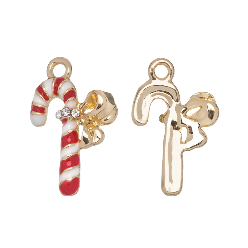Фурнитура для бижутерии — подвеска с эмалью и фианитами в форме новогоднего леденца.