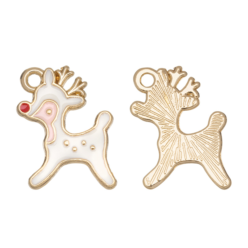 Фурнитура для бижутерии — подвеска с эмалью в форме олененка Санты.