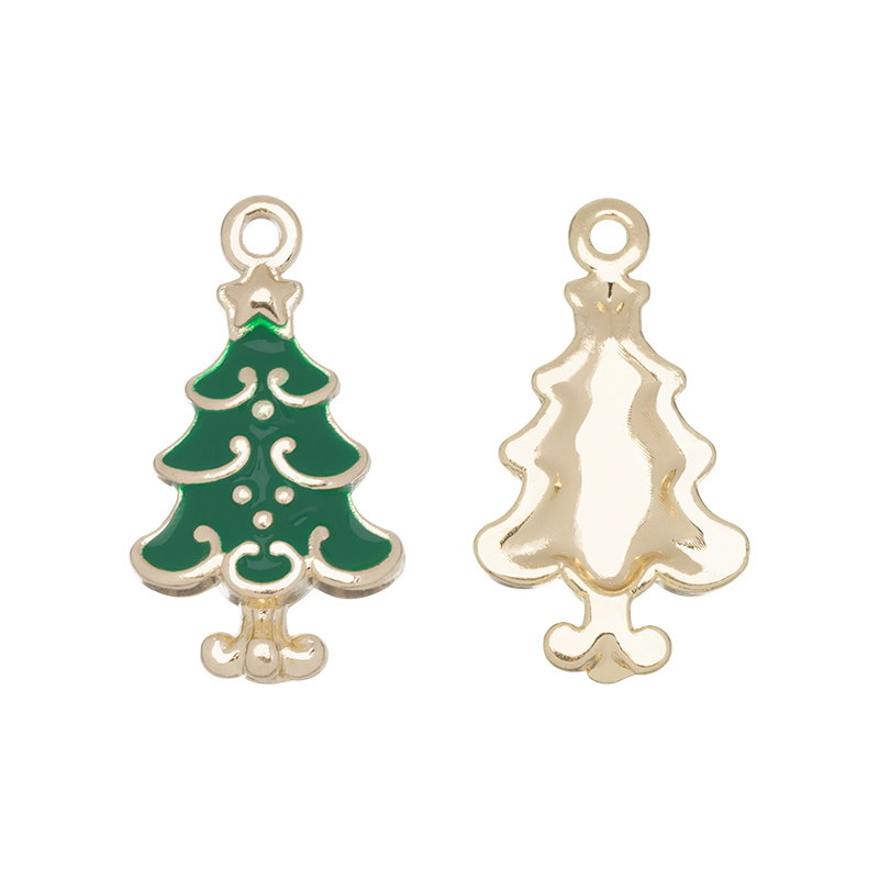 Фурнитура для бижутерии — подвеска с эмалью в форме новогодней елки.