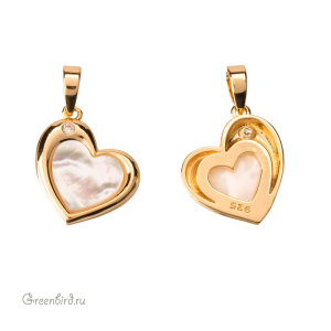 Фурнитура для бижутерии - подвеска-сердечко с перламутровой вставкой, фианитом и цельнолитым бейлом-петелькой на колечке. Материал: латунь, покрытие: золото. Цвет: белый с выраженными переливами. Размер сердечка: 17,5 х 15 мм, бейл: 2,4 х 6,5 мм, отверстие примерно 3,5 х 5 мм, общая высота: 27 мм. Производство: Китай. Цена указана за 1 шт.