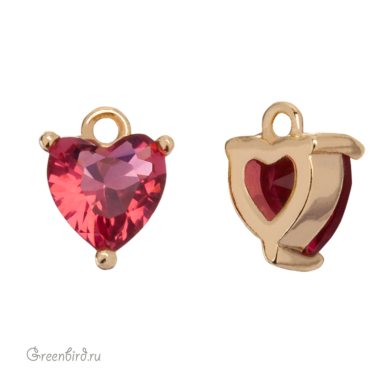 Фурнитура для бижутерии - подвеска в форме миниатюрного сердца с фианитом. Материал: латунь, покрытие: золото. Цвет вставки: розовато-рубиновый. Размер с колечком: 7 х 5,3 х 3,5 мм, внутренний диаметр колечка: 1 мм. Производство: Китай. Цена указана за 1 шт.