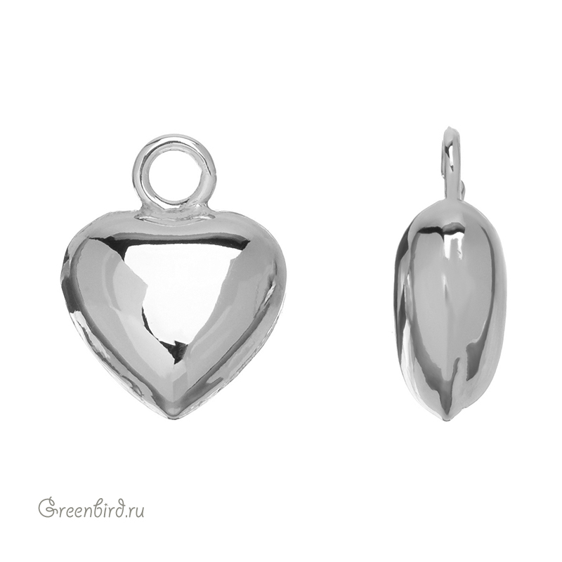 Фурнитура для бижутерии - объемная подвеска-сердечко. Материал: латунь, покрытие: родий. Размер с колечком: 15 х 12 мм, толщина: 6 мм, внутренний диаметр колечка: 2,6 мм. Производство: Китай. Цена указана за 1 шт.