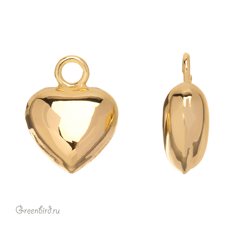 Фурнитура для бижутерии - объемная подвеска-сердечко. Материал: латунь, покрытие: золото. Размер с колечком: 15 х 12 мм, толщина: 6 мм, внутренний диаметр колечка: 2,6 мм. Производство: Китай. Цена указана за 1 шт.