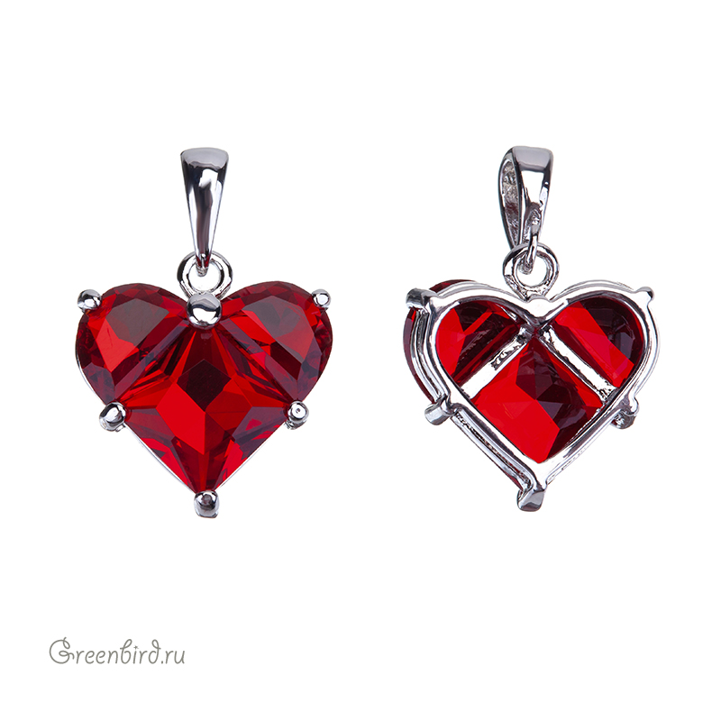Фурнитура для бижутерии - объемная подвеска в форме сердца с бейлом, украшенная крупными фианитами. Материал: латунь, покрытие: родий. Цвет вставки: прозрачный красный. Размер с колечком: 20 х 14 х 5 мм, внутренний размер бейла: 2,6 х 4 мм. Производство: Китай. Цена указана за 1 шт.