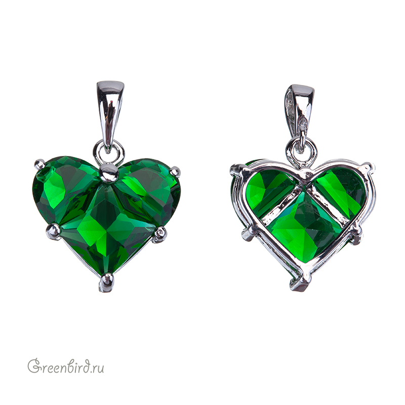 Фурнитура для бижутерии - объемная подвеска в форме сердца с бейлом, украшенная крупными фианитами. Материал: латунь, покрытие: родий. Цвет вставки: прозрачный зеленый. Размер с колечком: 20 х 14 х 5 мм, внутренний размер бейла: 2,6 х 4 мм. Производство: Китай. Цена указана за 1 шт.