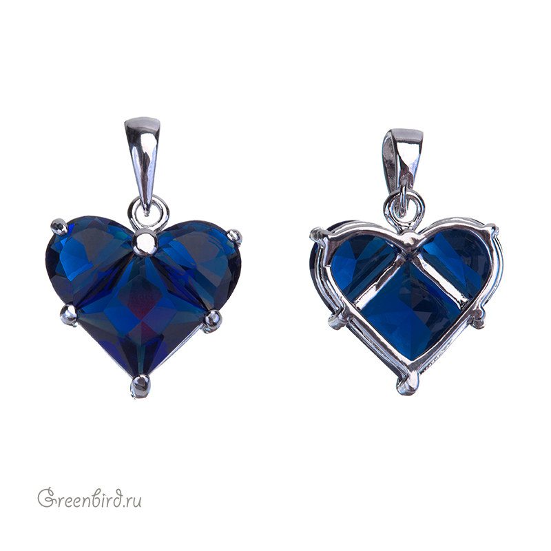 Фурнитура для бижутерии - объемная подвеска в форме сердца с бейлом, украшенная крупными фианитами. Материал: латунь, покрытие: родий. Цвет вставки: прозрачный темно-синий. Размер с колечком: 20 х 14 х 5 мм, внутренний размер бейла: 2,6 х 4 мм. Производство: Китай. Цена указана за 1 шт.