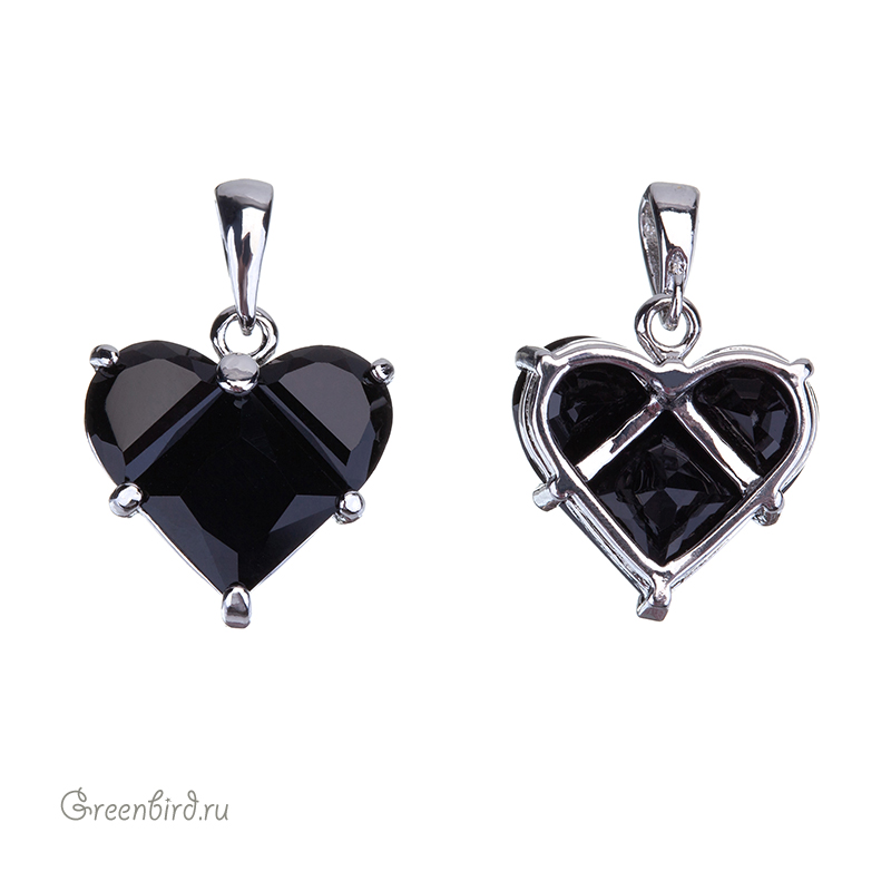 Фурнитура для бижутерии - объемная подвеска в форме сердца с бейлом, украшенная крупными фианитами. Материал: латунь, покрытие: родий. Цвет вставки: непрозрачный черный. Размер с колечком: 20 х 14 х 5 мм, внутренний размер бейла: 2,6 х 4 мм. Производство: Китай. Цена указана за 1 шт.