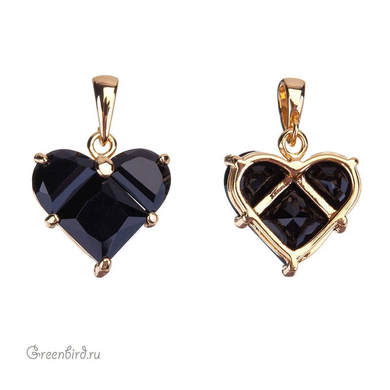 Фурнитура для бижутерии - объемная подвеска в форме сердца с бейлом, украшенная крупными фианитами. Материал: латунь, покрытие: золото. Цвет вставки: непрозрачный черный. Размер с колечком: 20 х 14 х 5 мм, внутренний размер бейла: 2,6 х 4 мм. Производство: Китай. Цена указана за 1 шт.