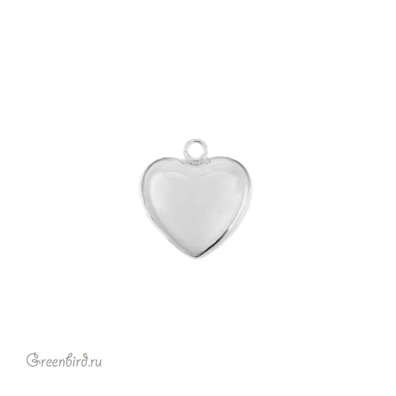 Фурнитура для бижутерии - объемная подвеска-сердечко. Материал: латунь, покрытие: родий. Размер с колечком: 17 х 15 мм, толщина: 5 мм, внутренний диаметр колечка: 2,6 мм. Производство: Китай. Цена указана за 1 шт.