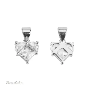 Фурнитура для бижутерии - объемная подвеска в форме сердца с бейлом, украшенная крупными фианитами. Материал: латунь, покрытие: родий. Цвет вставки: бесцветный. Размер с колечком: 15 х 9,5 х 3,5 мм, внутренний размер бейла: 3 х 4 мм. Производство: Китай. Цена указана за 1 шт.