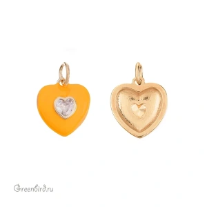 Фурнитура для бижутерии - объемная подвеска в форме сердца с эмалью, украшенная фианитом. Материал: латунь, покрытие: золото. Цвет эмали: оранжевый. Цвет вставки: прозрачный кристалл. Размер с колечком: 16 х 12 х 4 мм. Производство: Китай. Цена указана за 1 шт.