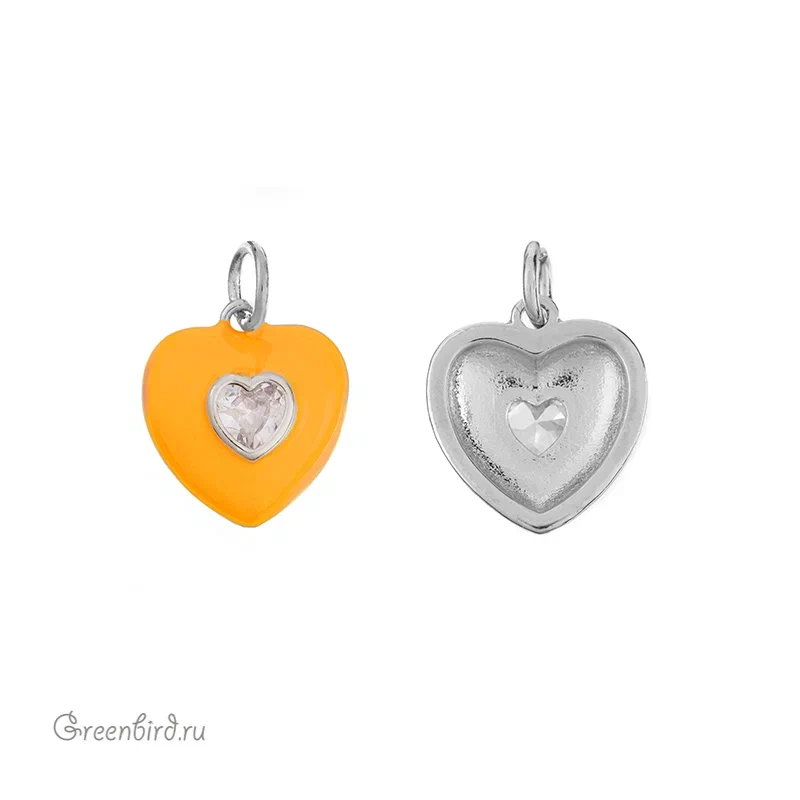 Фурнитура для бижутерии - объемная подвеска в форме сердца с эмалью, украшенная фианитом. Материал: латунь, покрытие: родий. Цвет эмали: оранжевый. Цвет вставки: прозрачный кристалл. Размер с колечком: 16 х 12 х 4 мм. Производство: Китай. Цена указана за 1 шт.
