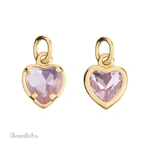 Фурнитура для бижутерии - подвеска в форме миниатюрного сердца с фианитом. Материал: латунь, покрытие: золото. Цвет вставки: розовый. Размер с колечком: 8,5 х 6,5 х 3,5 мм. Производство: Китай. Цена указана за 1 шт.
