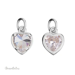 Фурнитура для бижутерии - подвеска в форме миниатюрного сердца с фианитом. Материал: латунь, покрытие: родий. Цвет вставки: прозрачный. Размер с колечком: 8,5 х 6,5 х 3,5 мм. Производство: Китай. Цена указана за 1 шт.