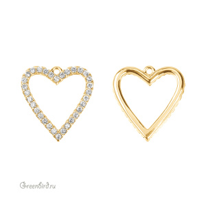 Фурнитура для бижутерии - подвеска в форме сердечка, украшенная фианитами. Материал: латунь, покрытие: золото. Размер с колечком: 13 х 12,5 мм, толщина 2 мм, внутренний диаметр колечка: 0,7 мм. Производство: Китай. Цена указана за 1 шт.