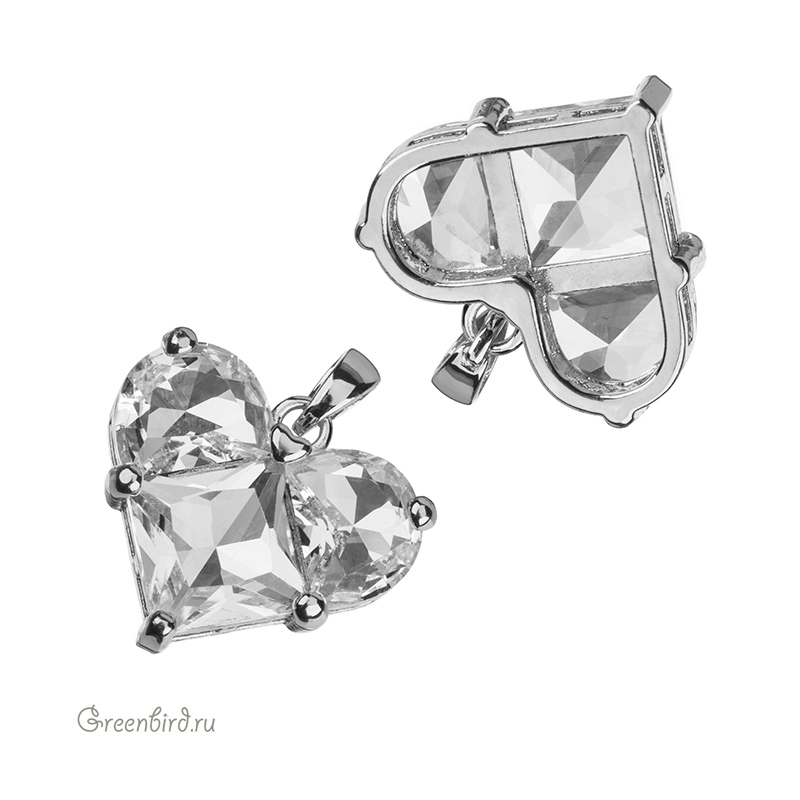 Фурнитура для бижутерии - объемная подвеска в форме сердца с бейлом, украшенная крупными фианитами. Материал: латунь, покрытие: родий. Цвет вставки: бесцветный. Размер с колечком: 21,5 х 19,5 х 7 мм, внутренний размер бейла: 3,3 х 5 мм. Производство: Китай. Цена указана за 1 шт.