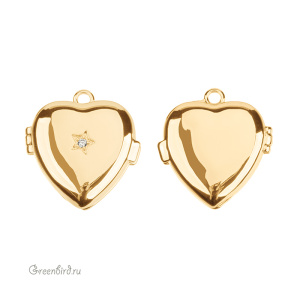 Фурнитура для бижутерии - открывающийся медальон-сердечко. Материал: латунь, покрытие: золото. Размер с колечком: 20 х 23 мм, толщина: 6,3 мм, внутренний диаметр колечка: 2 мм. Производство: Китай. Цена указана за 1 шт.