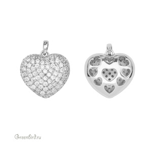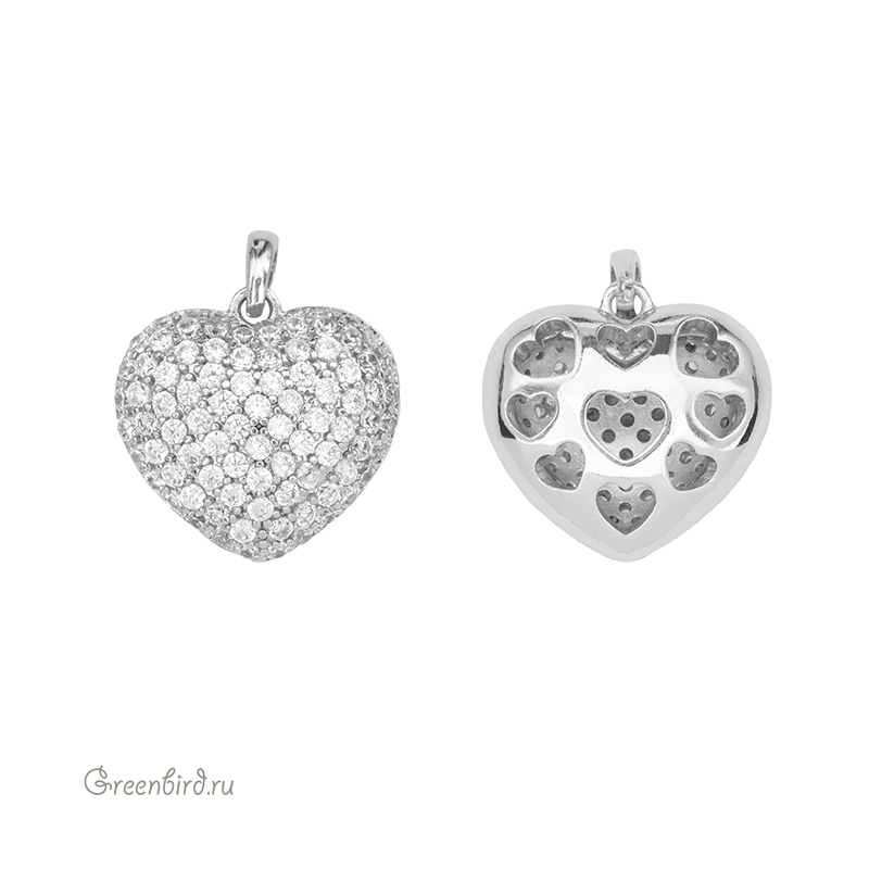 Фурнитура для бижутерии - подвеска объемная в форме сердечка, украшенная фианитами. Материал: латунь, покрытие: родий. Размер с колечком: 14 х 14 x 6,5 мм, внутренний диаметр колечка: 1,2 мм, внутренний размер бейла: 2 х 3 мм. Производство: Китай. Цена указана за 1 шт.