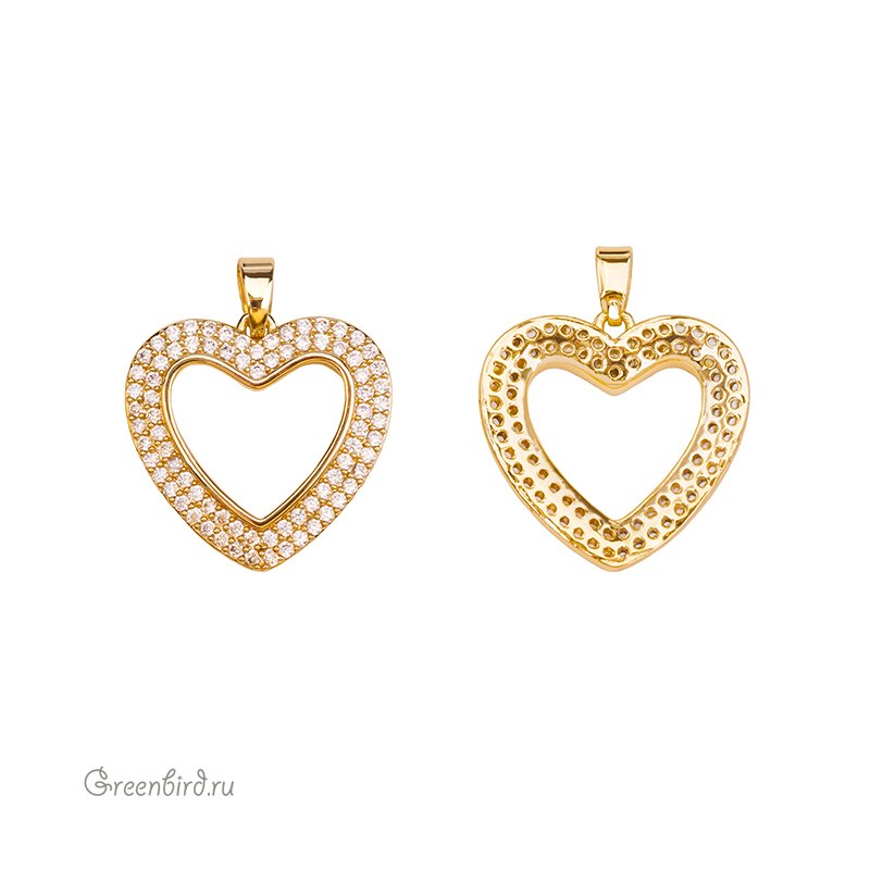 Фурнитура для бижутерии - подвеска в форме сердечка, украшенная фианитами. Материал: латунь, покрытие: золото. Размер с колечком: 18,5 х 19 x 3 мм, внутренний диаметр колечка: 1,6 мм, внутренний размер бейла: 2,5 х 4,5 мм. Производство: Китай. Цена указана за 1 шт.