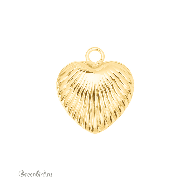 Фурнитура для бижутерии -  подвеска в форме сердечка объемная, полая, рифленая поверхность. Материал: латунь, покрытие: золото. Размер с колечком: 23,5 х 20 мм, толщина: 11 мм, внутренний диаметр колечка: 3 мм. Производство: Китай. Цена указана за 1 шт.