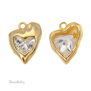 Фурнитура для бижутерии - подвеска в форме сердечка с эффектом мятого металла, фианит. Материал: латунь, покрытие: золото. Цвет вставки: Crystal. Размер с колечком: 15 х 12 x 6 мм, внутренний диаметр колечка: 1,5 мм. Производство: Китай. Цена указана за 1 шт.