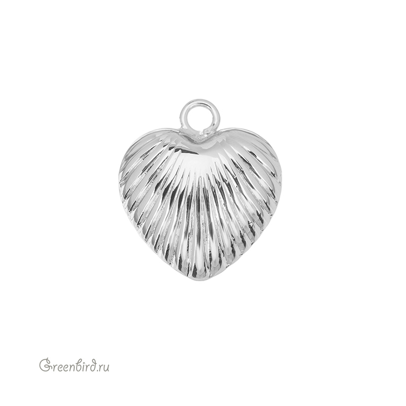 Фурнитура для бижутерии - подвеска в форме сердечка объемная, полая, рифленая поверхность. Материал: латунь, покрытие: родий. Размер с колечком: 23,5 х 20 мм, толщина: 11 мм, внутренний диаметр колечка: 3 мм. Производство: Китай. Цена указана за 1 шт.