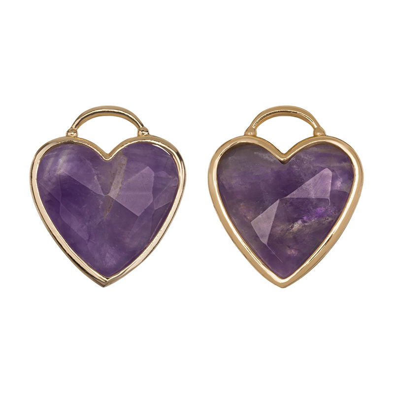 Фурнитура для бижутерии — подвеска «Каменное сердце» с аметистом. Материал: латунь с покрытием цвета золото.