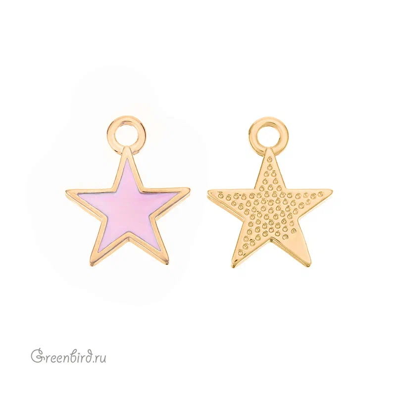 Фурнитура для бижутерии - подвеска-звездочка односторонняя с эмалью. Материал: латунь, покрытие: золото. Цвет: розовый. Размер: 13 х 10,3 мм, толщина звездочки: 1,9 мм. Производство: Китай. Цена указана за 1 шт.