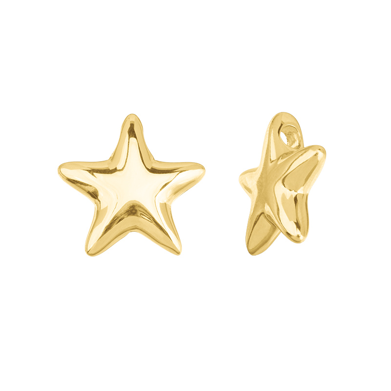 Фурнитура для бижутерии - подвеска-звездочка с отверстием в луче. Материал: латунь, покрытие: золото. Размер: 18 х 18 x 5 мм, диаметр отверстия: примерно 3 мм. Производство: Китай. Цена указана за 1 шт.
